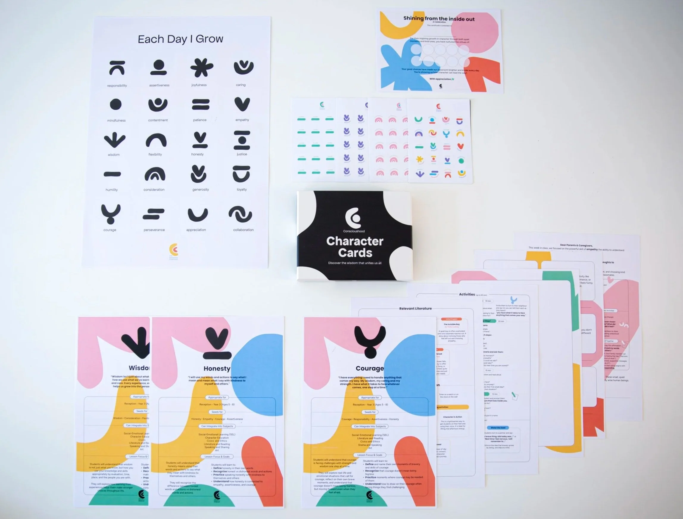 20-virtue lesson plans you can run from 5–50 minutes, with age-banded options, slides, and take-home extensions. Use growth stickers to help students name and track their developing character skills, and award Certificates of Character Growth to celebrate milestones and build belonging. Works on its own or as part of term long Classroom Kits.